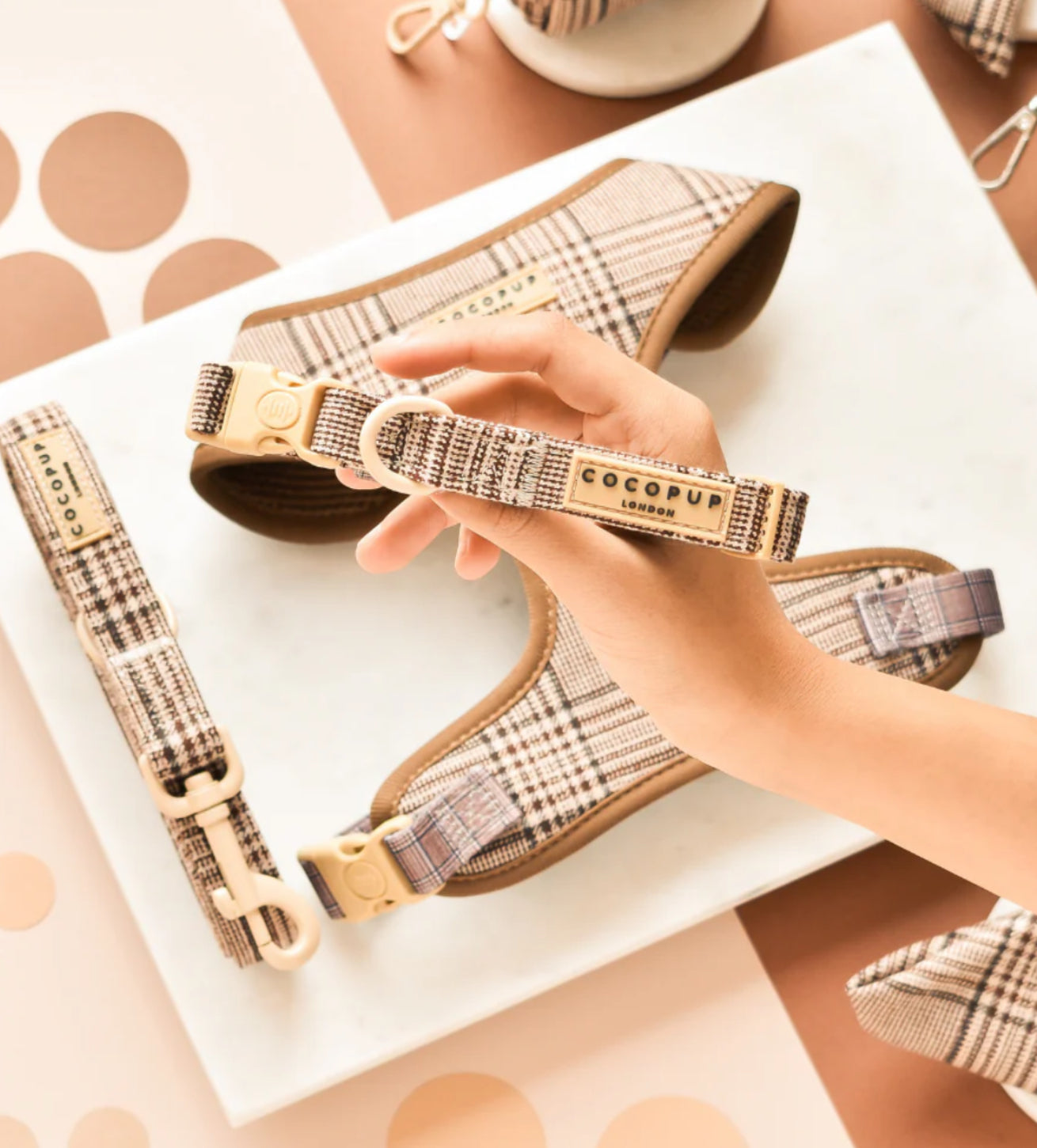 Get your pup ready for a stylish and safe dog walk with our Pup Plaid Collar! Made with a tweed and tartan design in a charming chocolate brown colour, this dog collar adds a touch of country style to your furry friend. Plus, its safety lock feature ensures their security during outdoor adventures. Time to hit the trails!