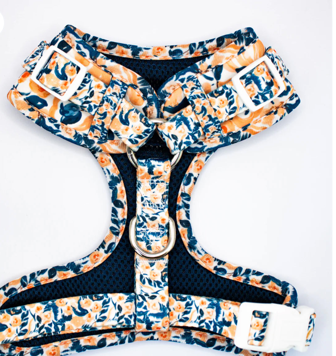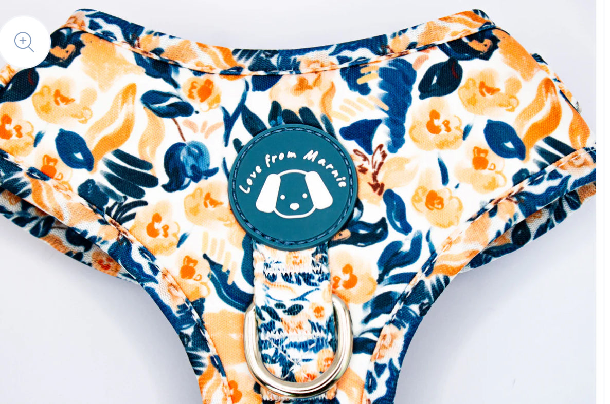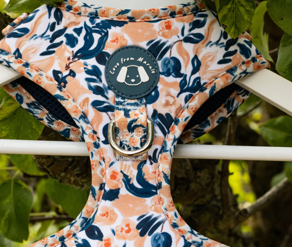 A vibrant, floral print of pastel peach and cool blues! This design is sure to make your pup look and feel so chic!